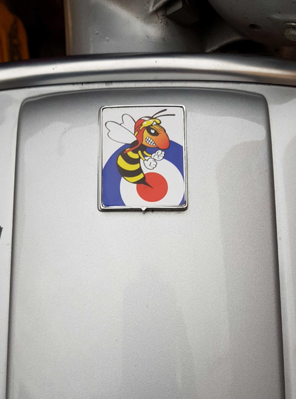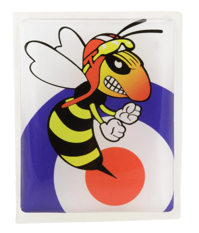 Emblème Vespa "Target méchante guêpe" cascade à 4 coins, bleu/blanc/rouge