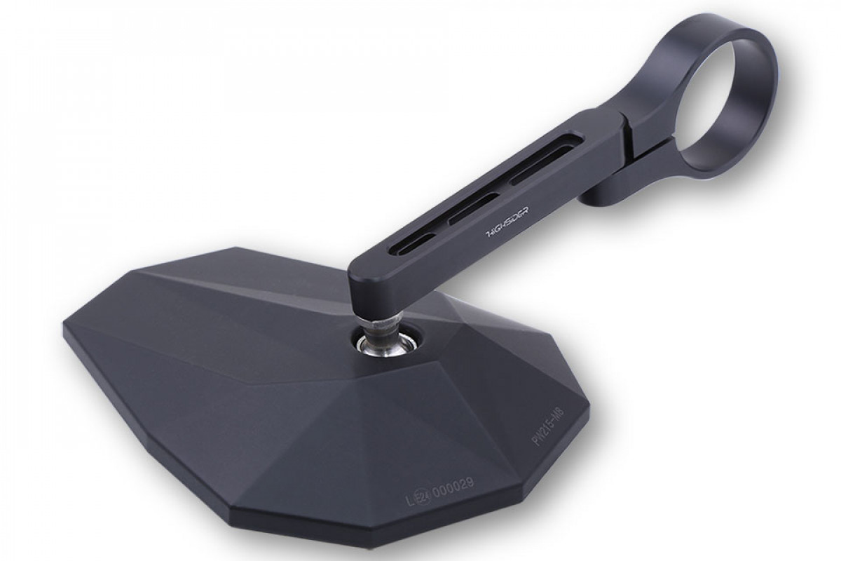 Le design furtif caractéristique connu de la technologie de camouflage militaire caractérise le miroir élégant et de haute qualité. Combinée à la couleur noire mate, la tête de miroir en plastique de haute qualité avec ses éléments angulaires a un aspect saisissant. D'autres accents visuels peuvent être trouvés dans le bras de rétroviseur court en aluminium, qui a trois fentes d'aération sportives et un joint sur la pince qui offre des options de réglage supplémentaires pour une meilleure vue. Grâce à l'utilisation de matériaux légers, la série STEALTH de HIGHSIDER appartient à la catégorie de poids des masselottes. Un joint réglable offre des options de réglage supplémentaires pour le STEALTH -X5.