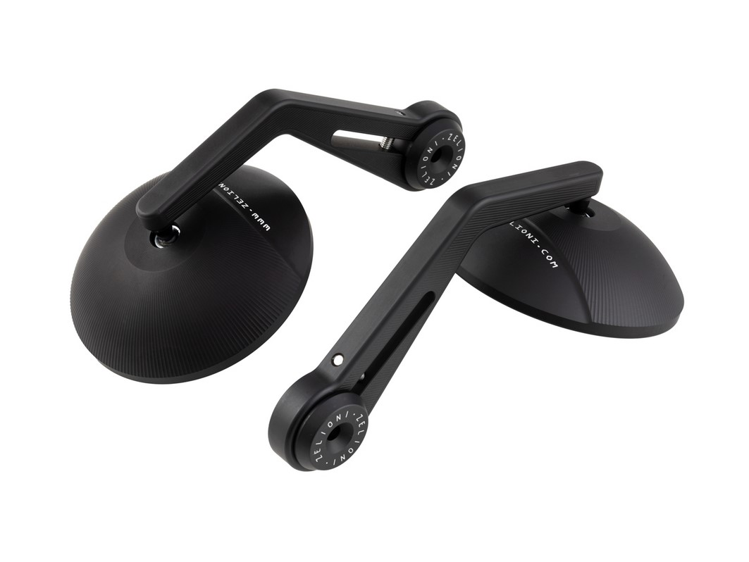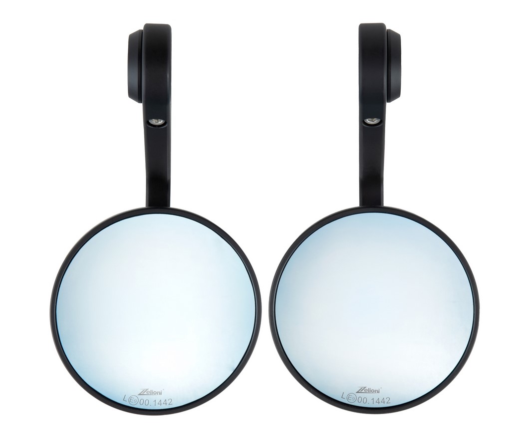Kit de rétroviseurs d'extrémité de guidon par ZELIONI. Le kit contient 2 rétroviseurs, y compris le matériel de montage pour la fixation à l'extrémité du guidon.