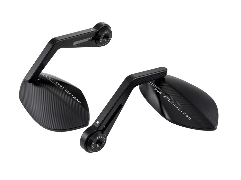 Kit de rétroviseurs d'extrémité de guidon par ZELIONI. Le kit contient 2 rétroviseurs, y compris le matériel de montage pour la fixation à l'extrémité du guidon.