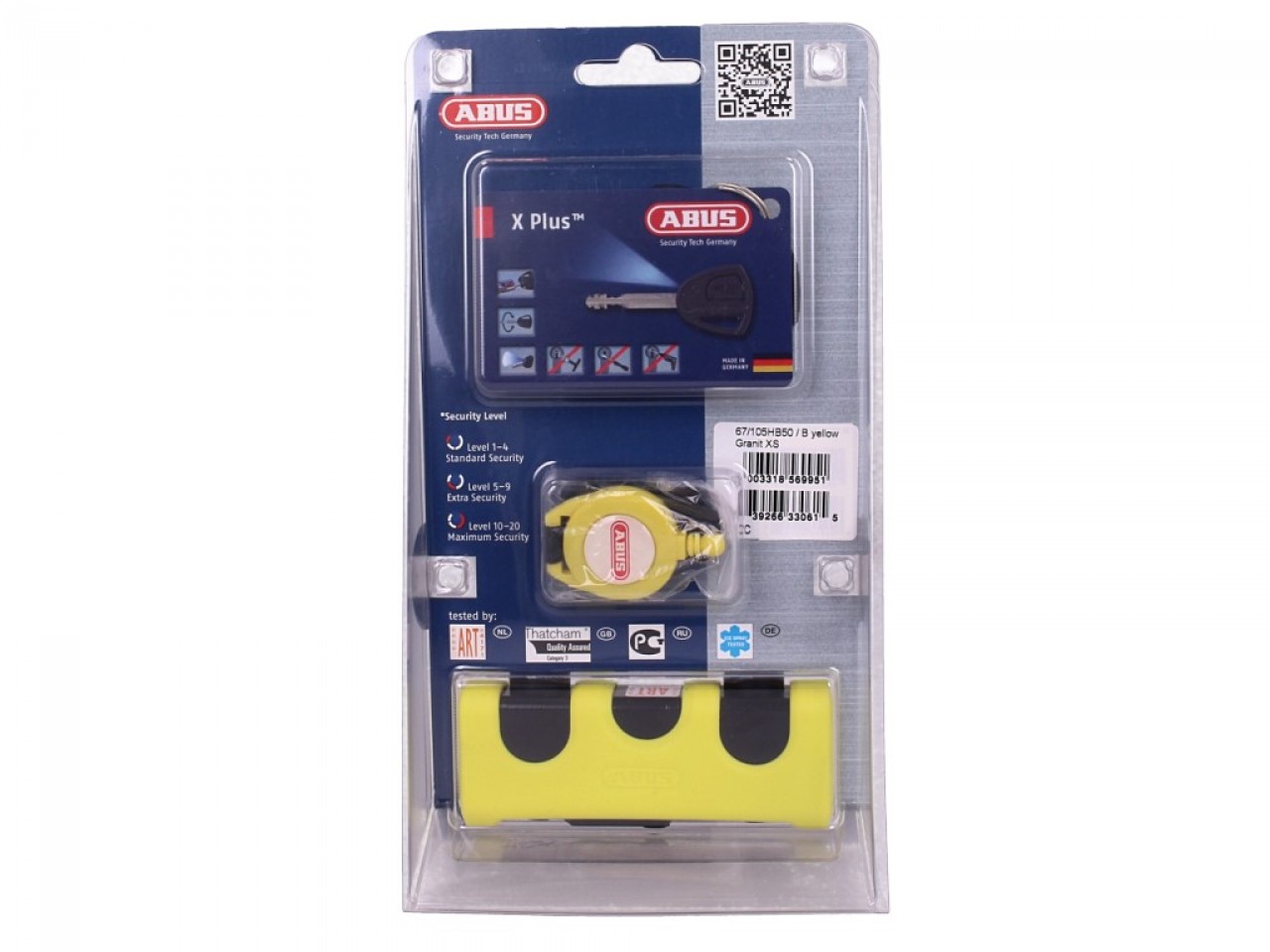 L'anse de 14 mm en acier spécialement trempé est verrouillée deux fois dans le corps de la serrure bien blindé. Un cylindre ABUS XPlus augmente la sécurité contre les manipulations telles que le picking.