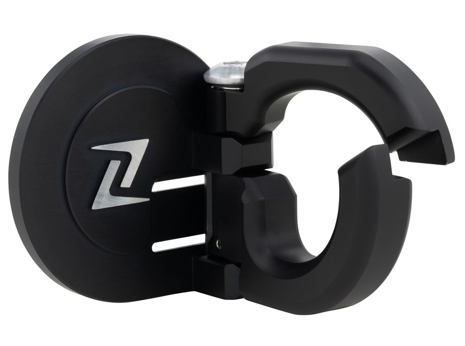 Crochet à bagages en aluminium haute résistance, fraisé CNC, noir mat, anodisé, avec logo ZELIONI. Pliable, avec serrure.