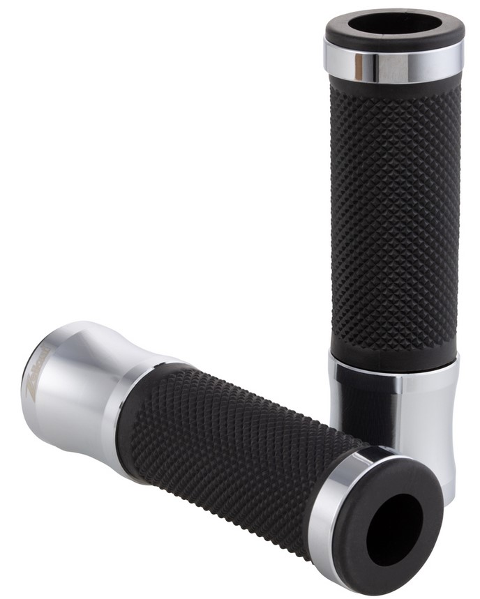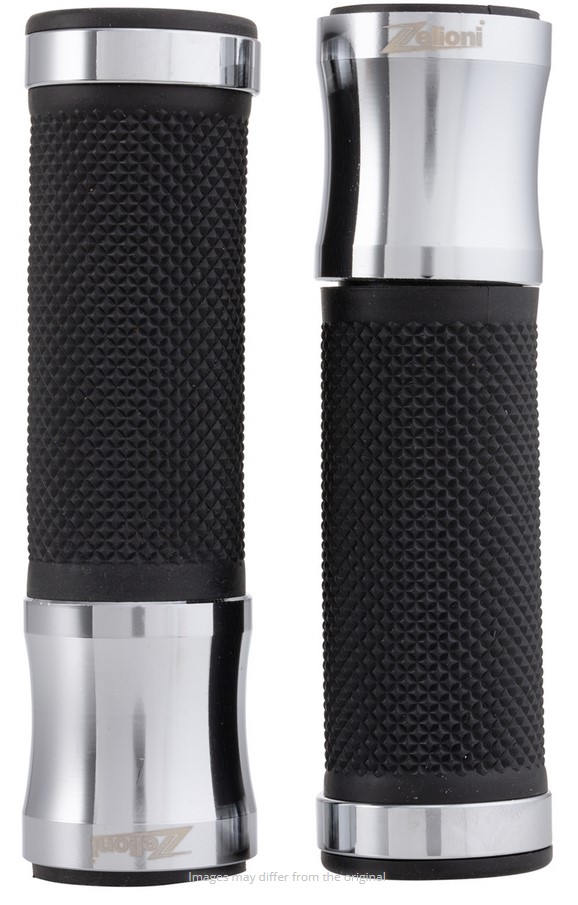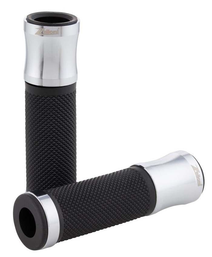 Poignée ergonomique avec paume caoutchoutée. Bouchons en aluminium avec logo ZELIONI gravé au laser. Extrémités ouvertes pour le montage de poids/miroirs d'extrémité de guidon.