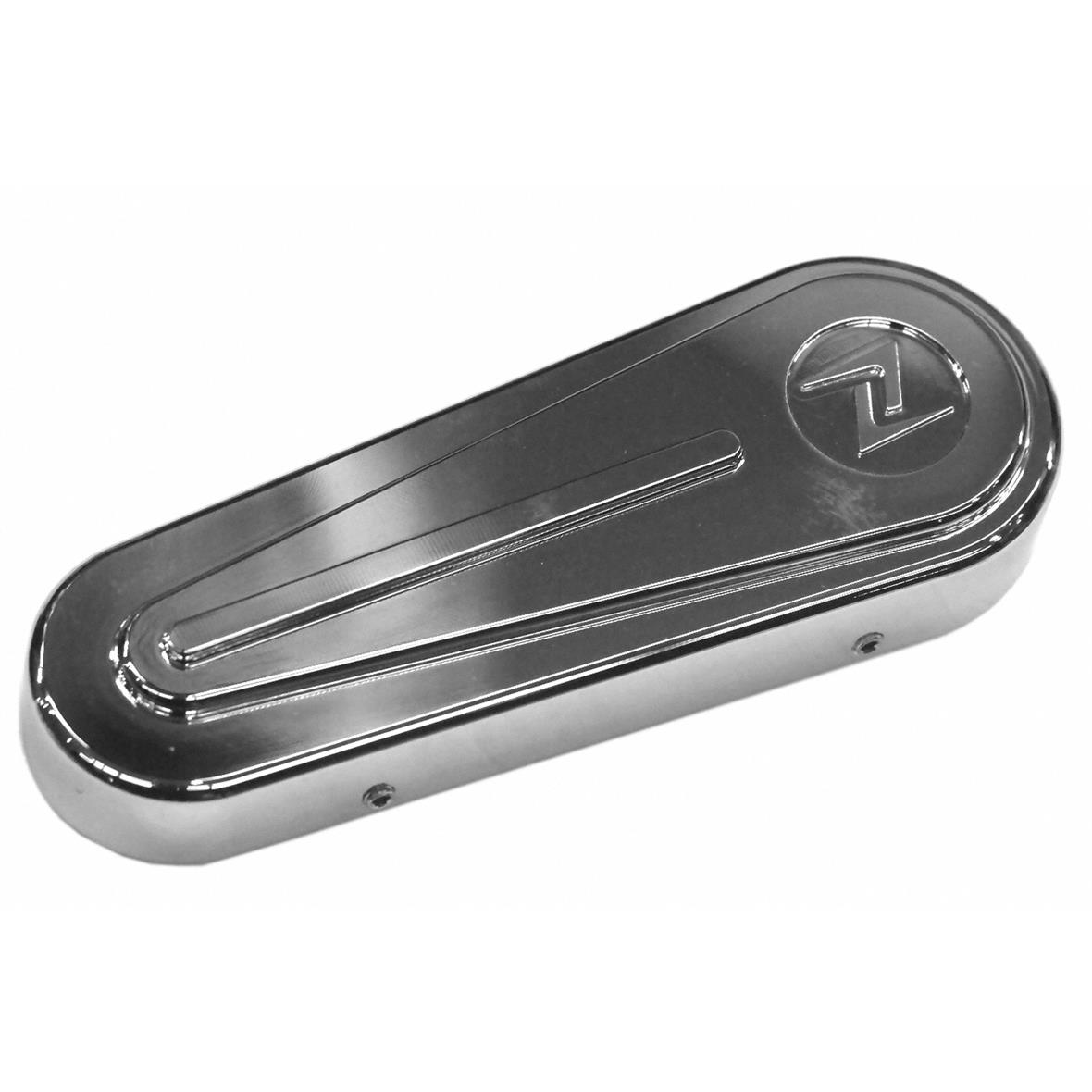 Couvercle de bras oscillant en aluminium haute résistance, fraisé CNC. Fixé avec des vis sans tête et tient solide comme le roc. Un hommage aux housses des modèles Vespa des années 50/60.