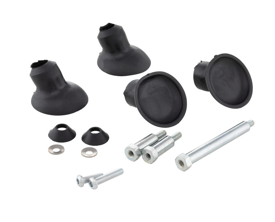 Le porte-bagages avant est solidement vissé à la carrosserie en deux points . En raison de la modification de l'avant des modèles GTS HPE, le porte-bagages ne peut plus être fixé à l'aide d'une tôle angulaire sur le bouclier de jambe. Pour le montage, il faut percer deux trous dans la cascade, comme pour le support PIAGGIO. La forme et la taille du support sont analogues à celles de la pièce OEM Piaggio.