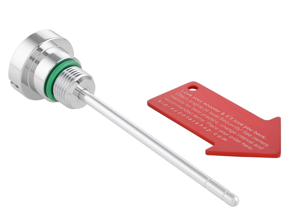 Le bouchon de remplissage d'huile / jauge SIP PORDOI pour l'huile moteur est fabriqué en aluminium fraisé CNC de haute qualité. Grâce à leur conception simple, les bouchons de remplissage d'huile sont beaux sur chaque véhicule et s'intègrent bien dans l'image globale de la Vespa. L'échelle sur la jauge est alignée avec les bouchons de remplissage d'origine, la bague d'étanchéité correspondante est déjà fixée.Les bouchons de remplissage standard sont souvent volés dans les véhicules en stationnement. Afin de rendre le travail plus difficile pour les personnes non autorisées, nous avons pensé à un petit plus de sécurité et fournissons un outil de montage spécial avec les vis de remplissage qui peut également être utilisé comme porte-clés.