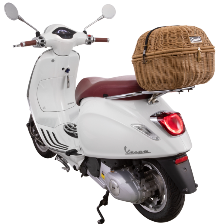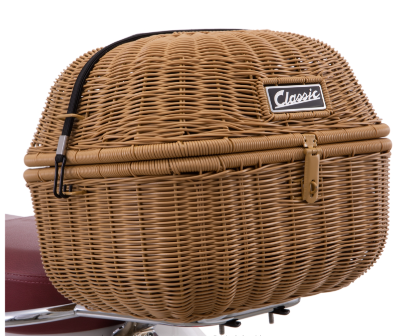 Le panier à bagages SIP "Classic" est une belle alternative au top case Vespa compact normal et le complément idéal pour tous ceux qui ont besoin de plus d'espace de rangement. Les aliments du supermarché, les courses au marché hebdomadaire ou un casque peuvent être rangés en toute sécurité dans ce panier de 36x32x28 cm. Une bande élastique maintient le couvercle bien fermé, même lorsque la route est irrégulière, et la housse de pluie fournie protège le contenu même en cas d'averse. Un petit cadenas (non compris dans la livraison) peut être fixé pour protéger les biens des doigts étrangers. Une poche intérieure supplémentaire est comprise dans la livraison. Avec un volume de près de 18 litres, des poignées pratiques et une fermeture à glissière, il est le compagnon idéal pour les achats de toutes sortes. Le sac peut être facilement emporté, rempli et ensuite simplement placé dans le panier. Le sac intérieur "Classic" dispose d'une petite poche extérieure dans laquelle les lunettes de soleil, le téléphone portable ou les clés trouvent leur place. Les couleurs assorties au sac et au panier forment un ensemble harmonieux.