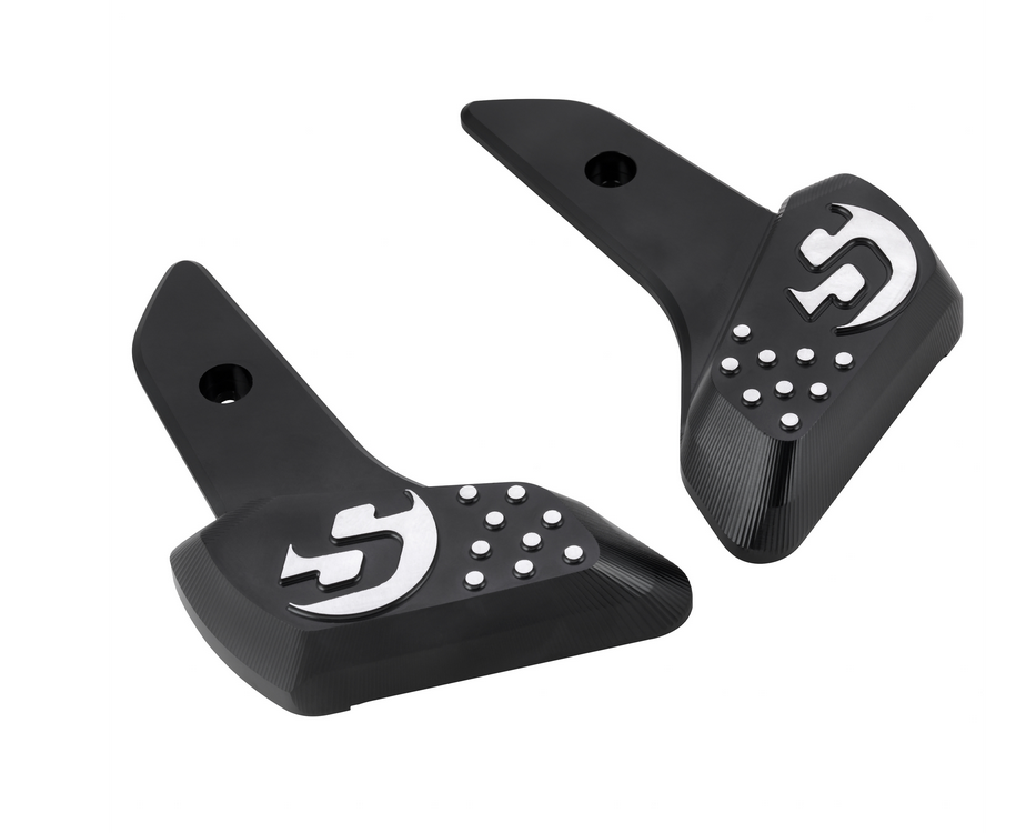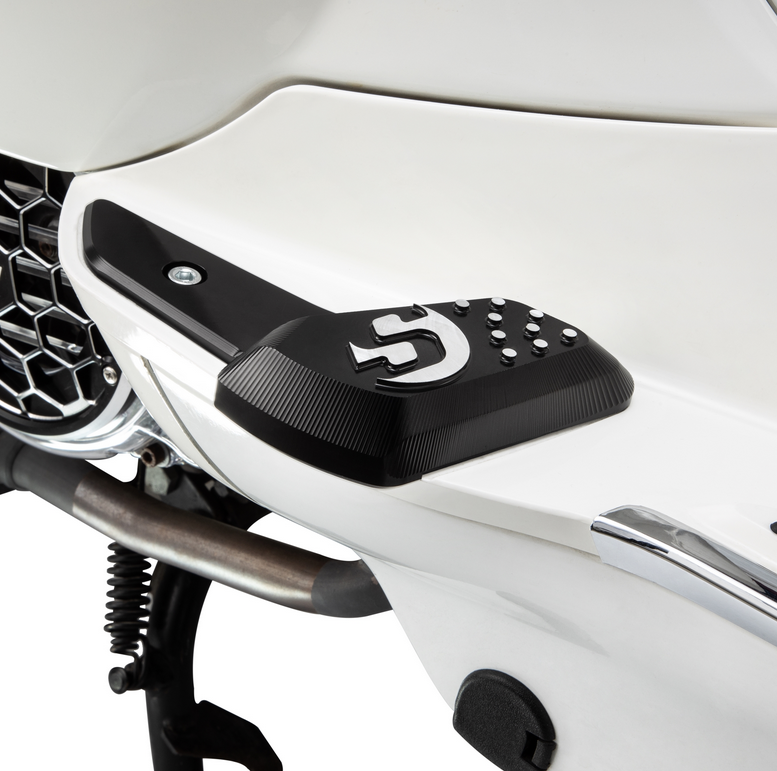 Les repose-pieds SIP offrent plus de confort au passager. Surtout pour un passager avec des jambes un peu courtes, la conduite peut vite devenir inconfortable. Les repose-pieds sont vissés fermement et de manière stable dans l'espace pour les pieds et offrent plus de confort et un soutien optimal. Les repose-pieds sont usinés CNC dans de l'aluminium de haute qualité et ensuite anodisés de manière colorée dans diverses couleurs. Pour le montage, les repose-pieds passager de série sont démontés et les nouveaux repose-pieds SIP sont fixés avec les vis fournies - difficile de faire plus simple.