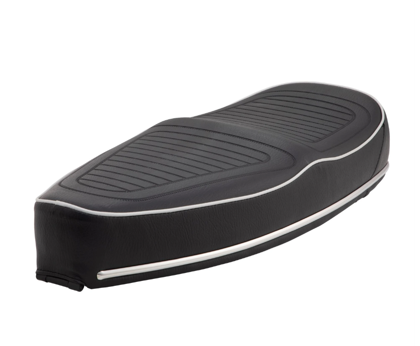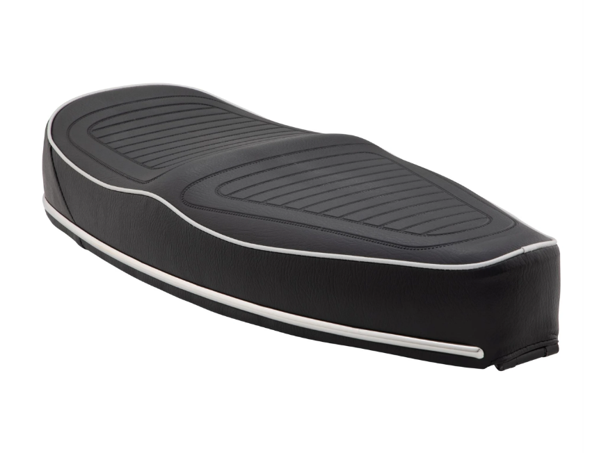 Informations sur le produit "Selle sport "Sport" pour Vespa PX 80-200ccm, noir surpiqué, passepoil argenté"