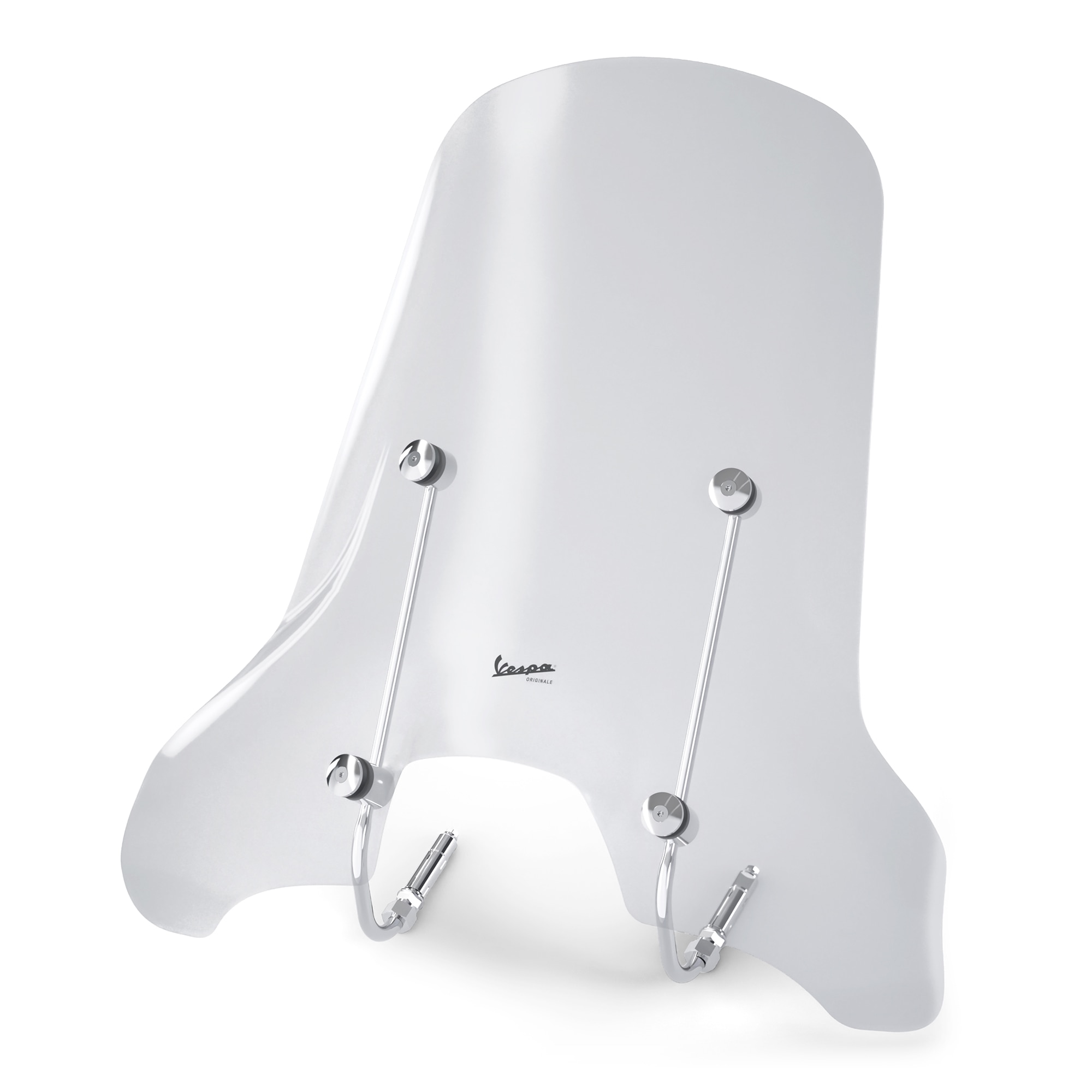Pare-brise haut (avec support) en méthacrylate de 4 mm d'épaisseur. Avec le logo Vespa et des supports chromés. Offre une protection optimale contre le vent et les intempéries.