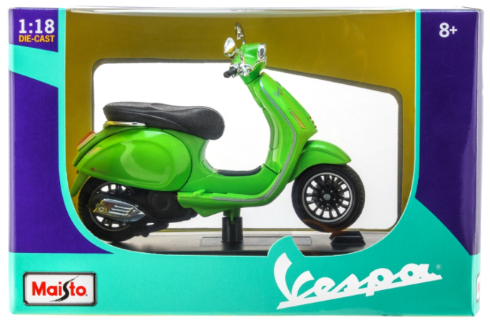 Design intemporel, haute valeur de reconnaissance, ces deux caractéristiques des scooters Vespa ont été immortalisées de manière extrêmement réussie dans cette série de modèles réduits de Maisto. Ces deux-roues miniatures uniques en leur genre se distinguent par une direction typiquement Vespa, de fins détails moteur et une position assise droite caractéristique. Et tout cela, bien sûr, emballé dans un carton avec le logo original.