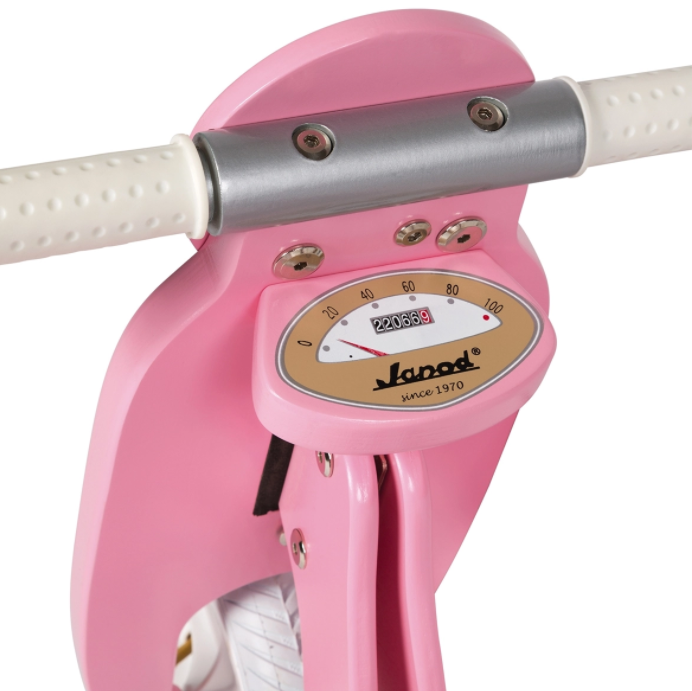 Cette draisienne, dont la conception est basée sur une ancienne "Vespa", peut être réglée en hauteur avec 2 vis (32-36,5 cm). Est donc parfaitement adaptable à la taille de l'enfant. Les roulements sans entretien et les pneus gonflables sont un autre plus et garantissent un plaisir de conduite parfait. Pour les petits enfants à partir de 3 ans, c'est un début optimal pour s'habituer aux petits sur les deux-roues. Extra stable, pneus et poignées en caoutchouc, siège réglable en hauteur. Dans l'ensemble, c'est un 2-roues parfait pour aider les enfants à apprendre le sens de l'équilibre et de l'équilibre.