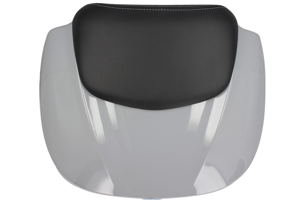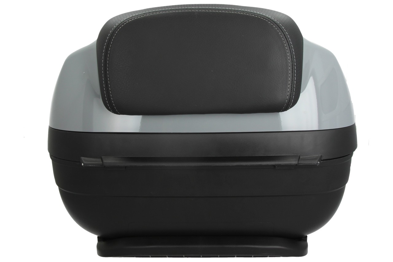Top Case avec système de montage rapide. Offre de la place pour un casque modulable. Coque supérieure peinte dans la couleur du véhicule, avec coussin dorsal confortable pour le passager, dans le même matériau et la même finition que la selle.