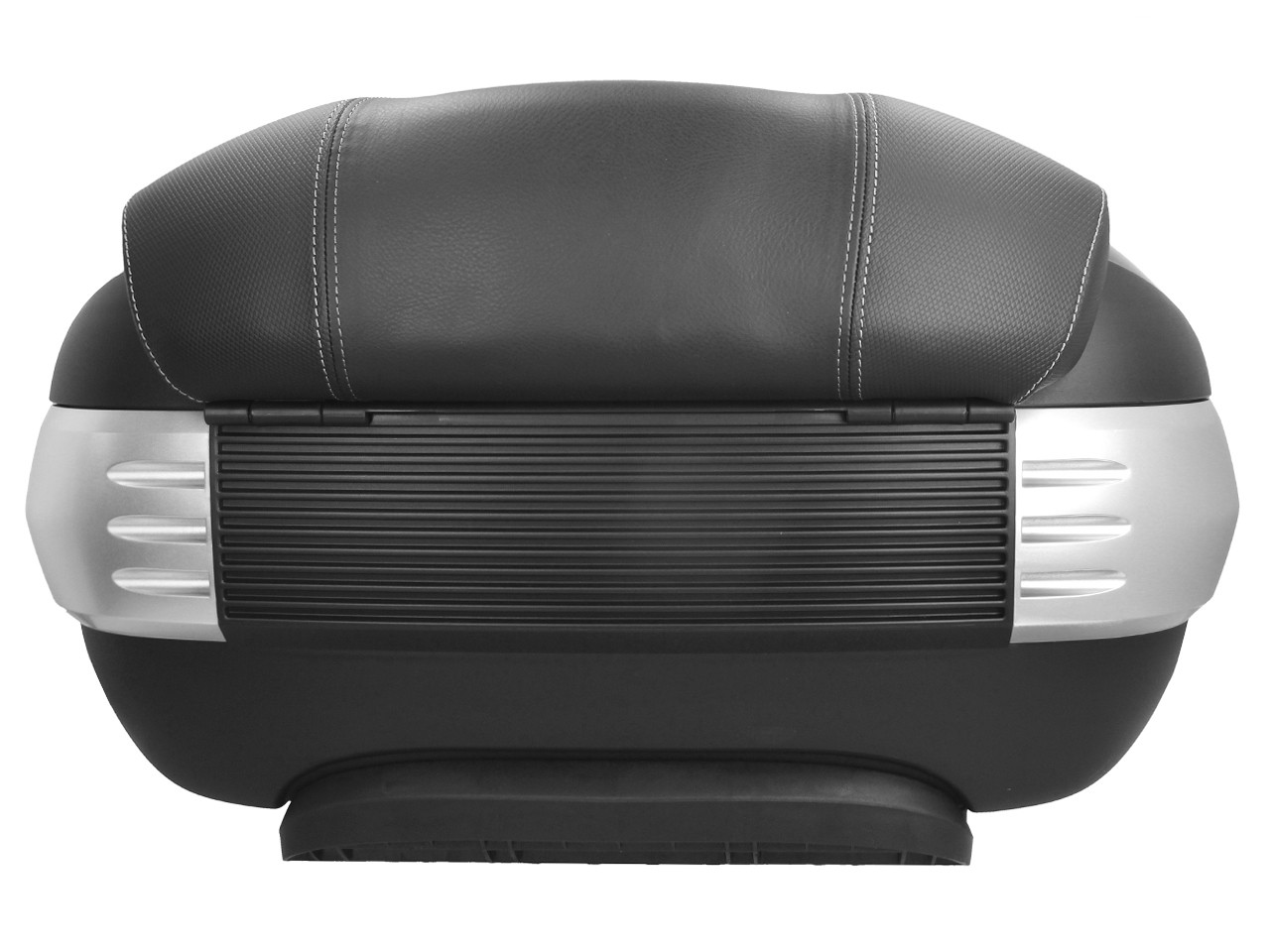 Spacieux, avec système de montage rapide. Offre de la place pour 2 casques modulaires. Coque supérieure peinte dans la couleur du véhicule, avec coussin dorsal confortable pour le passager, dans le même matériau et la même finition que la banquette. Poche pour documents à l'intérieur et bandes élastiques pour stabiliser les bagages.