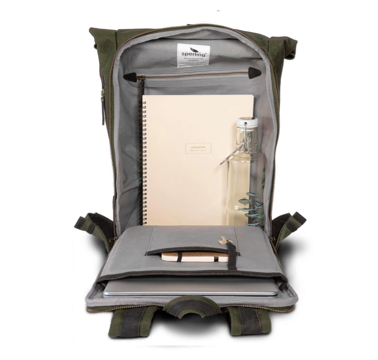 Le nouveau sac à dos Sperling pour les conducteurs de Vespa et de scooter allie fonctionnalité et durabilité grâce à son design robuste et imperméable. Fabriqué en sergé de coton bio et en liège naturel végétalien, il offre protection et style par tous les temps et dans toutes les situations. Le sac à dos   dispose d'un rembourrage de haute qualité sur le dos, les bretelles et le fond pour garantir un confort maximal. Un compartiment pour ordinateur portable rembourré de tous les côtés offre un espace sûr pour les appareils jusqu'à 15,6" ou 26,5cm de large.